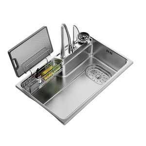 75×48cm火山银【4.0厚集渣槽】铜芯四档飞雨抽拉龙头+弹跳下水
