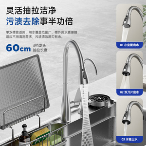 70×48cm火山银【4.0厚集渣槽】美式磁吸三档抽拉龙头+弹跳下水