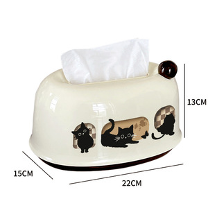 黑猫蝴蝶橱窗抽纸巾盒-白黑