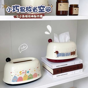 奶油风纸巾盒客厅茶几创意抽纸盒餐巾纸收纳盒卡通桌面弹簧纸抽盒