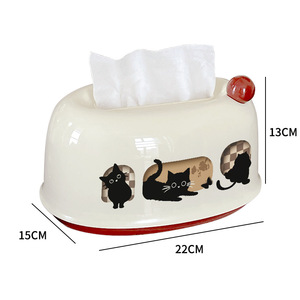 黑猫蝴蝶橱窗抽纸巾盒-白红