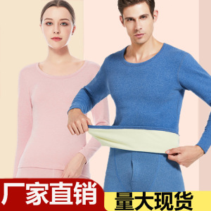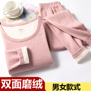 メーカー卸売秋冬ドイツベルベットサーマル下着セット男性と女性の両面起毛プラスベルベット厚みのある秋服と長ズボン