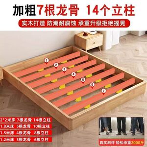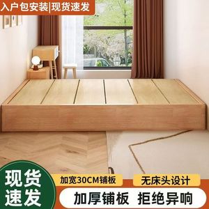 实木无床头床榻榻米橡胶木加宽加厚铺板落地排骨架床架双人高箱床
