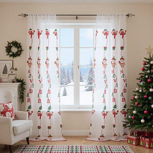 新款美式圣诞节窗帘圣诞老人绣花窗纱遮光长方形美化装饰布艺成品