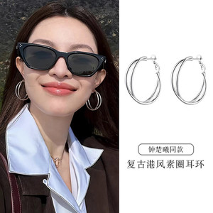 925纯银针双层大圈圈耳环女高级感小众金属耳圈复古素圈港风耳饰