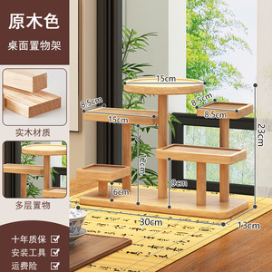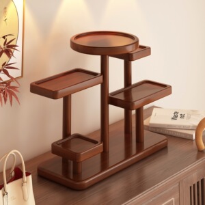 入户钥匙收纳玄关中古风实木摆件置物架小众款中式多功能展示架