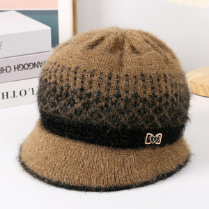 新款冬季中老年时尚针织毛线帽户外百搭防寒女老太太婆婆加绒盆帽