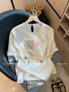 新しい中国風のジャカード刺繍半袖Tシャツ夏の新しいハイエンド気質年齢を軽減するサテンレディーストップ