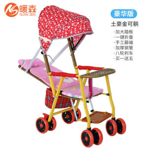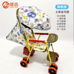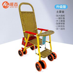 婴儿竹藤推车轻便夏季仿藤宝宝手推车可躺折叠竹编藤椅儿童小推车