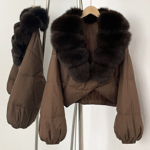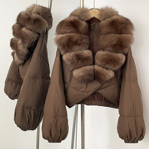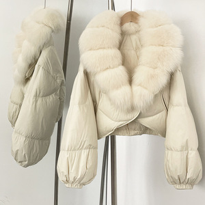 女性の新しい冬のダウンジャケット女性のハイエンドショートフォックスファー大きな毛皮の襟ハイエンドホワイトダックダウンジャケット女性用