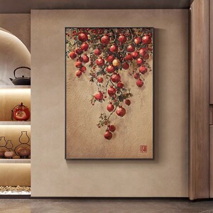 柿柿如意玄关装饰画2025新款寓意好餐厅挂画高级感入户门客厅壁画