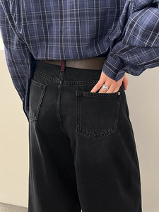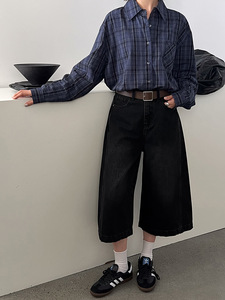 シンプルなディテール、ゆったりとしたミッドウエストデザイン、ワイドレッグジーンズ、Aヘム、滑らかで肌に優しいクロップドパンツ、トレンド1763