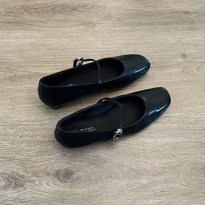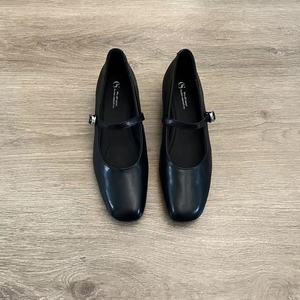 羊皮版真皮玛丽珍鞋女法式复古一脚蹬浅口方头平底鞋子一字带单鞋