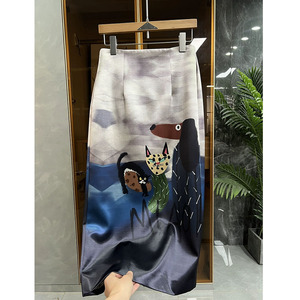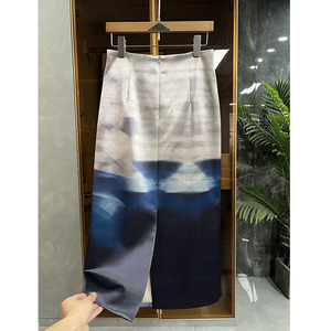 油画印花半身裙女2025早春新款高腰显瘦百搭气质中长款开叉包臀裙