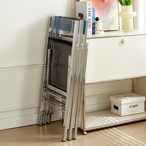 北欧透明椅子轻奢餐椅家用高级网红餐桌中古设计师简约塑料折叠椅