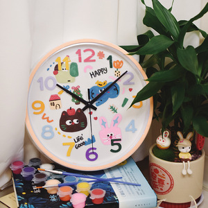 DIY手工涂鸦空白时钟挂钟创意可爱手绘钟表少女装饰墙壁送人礼物