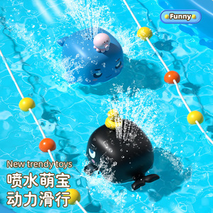 新品电动戏水鲸鱼宝宝萌趣可爱ABS料婴幼儿浴室洗澡戏水玩具跨境