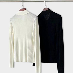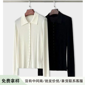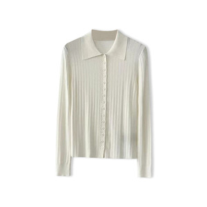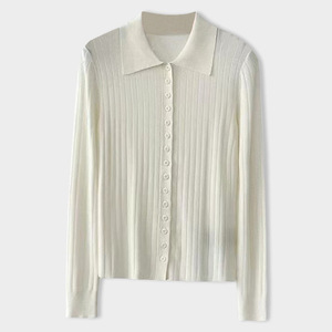 cos极简风 秋冬新款天丝polo领开衫纽扣针织衫羊毛坑条翻领上衣女