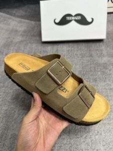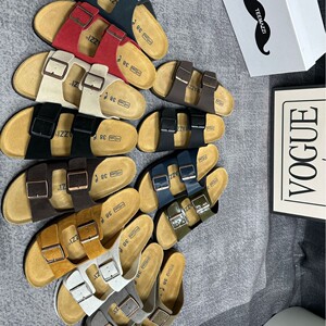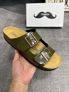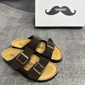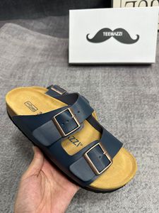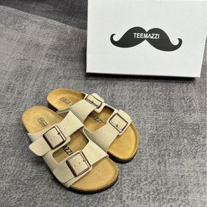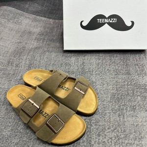 TEEMAZZI双排扣勃肯鞋男女同款全牛皮真皮软木底凉拖鞋时尚百搭款