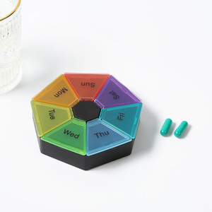 厂家供应便携式彩色7格药盒一周七天分药盒药片保健品分格收纳盒