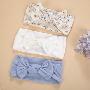 欧美ISN新款儿童头饰超柔软坑条棉宝宝蝴蝶结头带三件套婴儿发饰