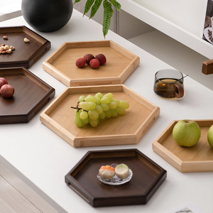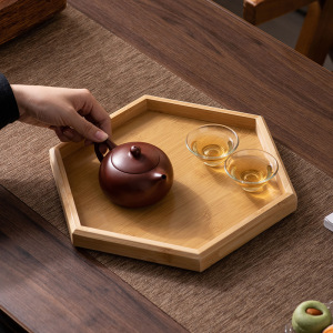 现代中式小茶盘木质托盘家用酒店茶盘直角茶具竹制托盘带提手