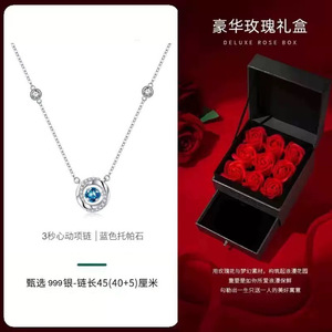 蓝钻项链+九朵花礼盒(附带擦银布)