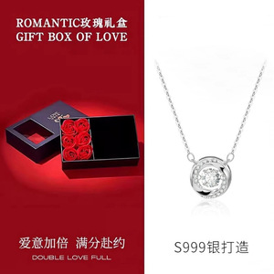 白钻项链+升降礼盒(附带擦银布)