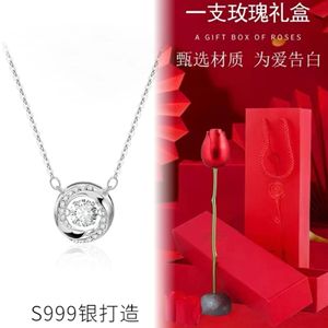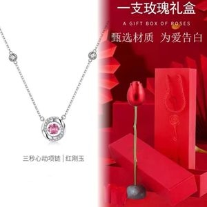 粉钻项链+一枝花礼盒(附带擦银布)