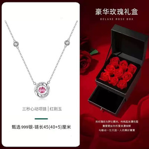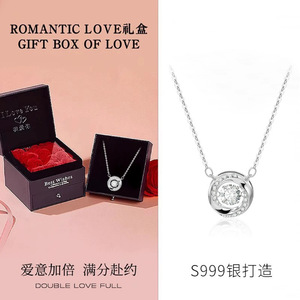 粉钻项链+升降礼盒(附带擦银布)
