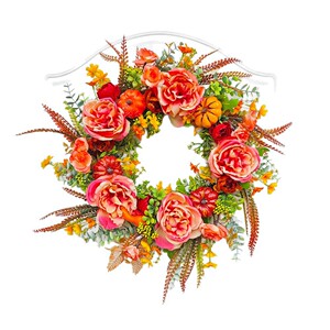 跨境新款感恩节场景布置用品秋季牡丹和南瓜花环氛围装饰挂件