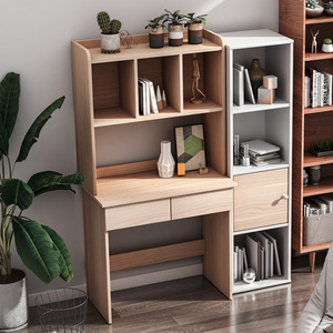 书桌书架一体卧室初中学生家用高中学习写字桌子宿舍带抽屉电脑桌