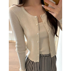 针织吊带开衫两件套格子半身裙套装