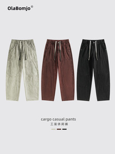 OLA美式微喇型裤工装男高街潮牌宽松纯色百搭显瘦休闲户外长裤