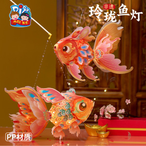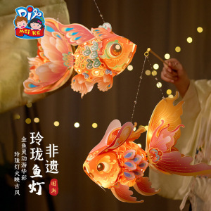 中秋节非遗玲珑鱼灯手工diy制作材料包儿童花灯古风锦鲤金鱼灯笼