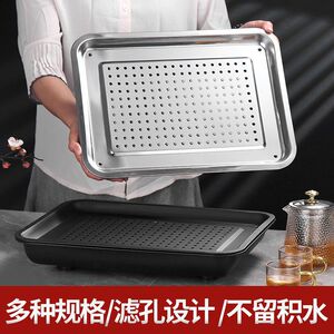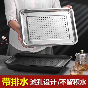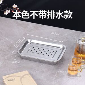 不锈钢茶盘储水式蓄水长方形茶托盘带排水漏盘家用功夫茶具