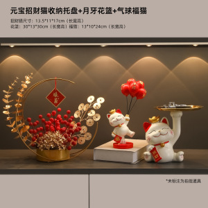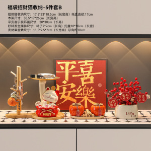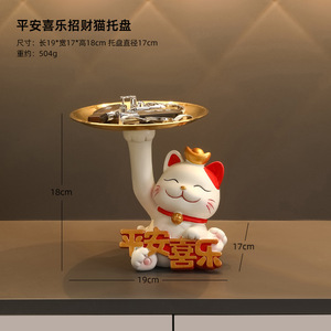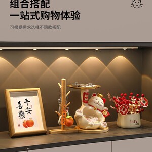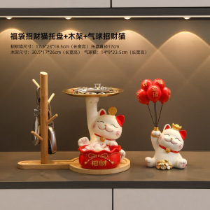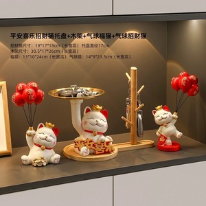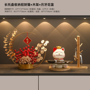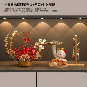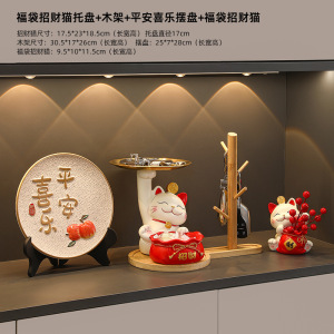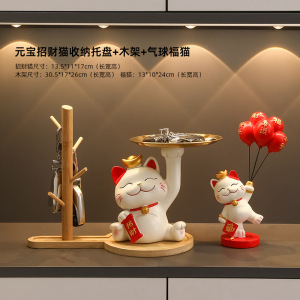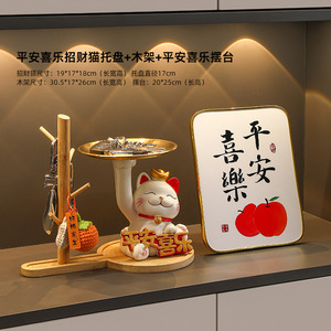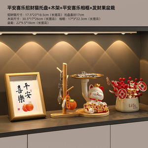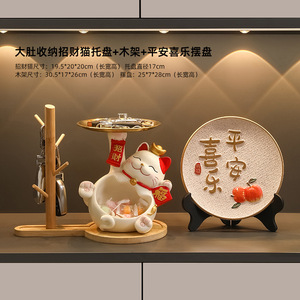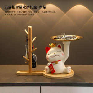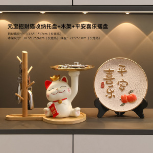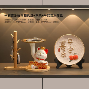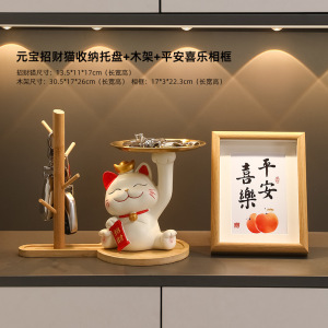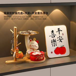 元宝招き猫収納トレイ + 木製スタンド + 平和と喜びのディスプレイ