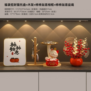元宝招き猫収納トレイ + 木製スタンド + 柿如意フォトフレーム + 柿如意鉢植え