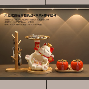 元宝招き猫収納トレイ+木製スタンド+柿飾り