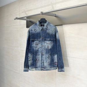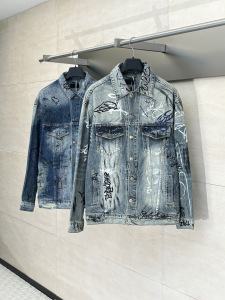 「奢牌工艺」巴黎涂鸦手绘水洗牛仔外套BLCG重工水洗做旧牛仔夹克