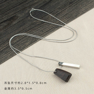 欧美几何光面方条檀木项链女个性嘻哈长款吊坠百搭毛衣链复古配饰