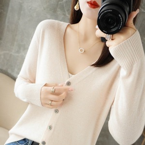 2025秋季新款针织开衫女士V领百搭毛衣外搭上衣长袖毛衫外套批发