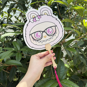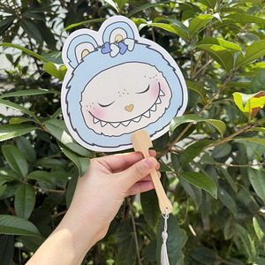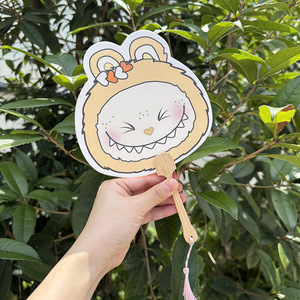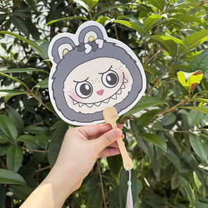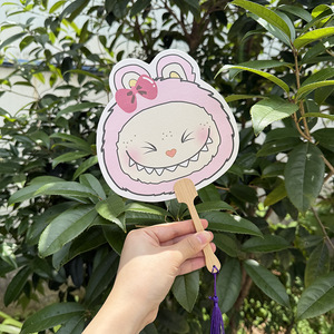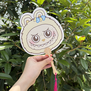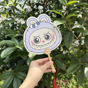 创意团扇卡通LABUBU可爱公仔拉布布扇子手摇扇学生小礼物宣纸团扇