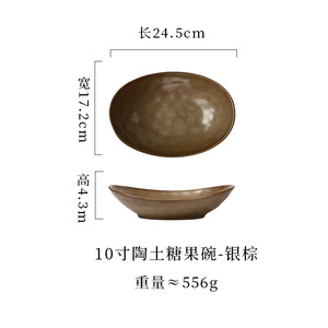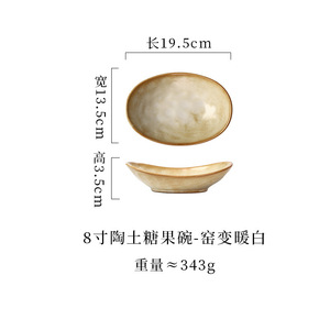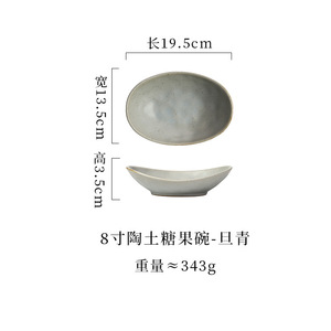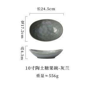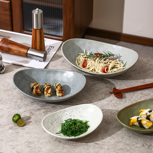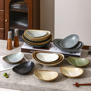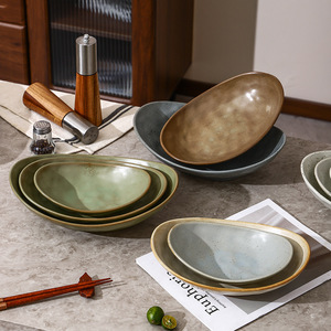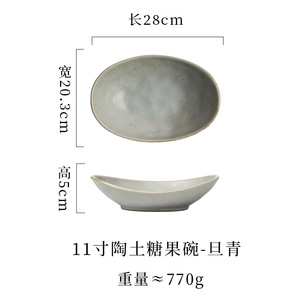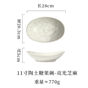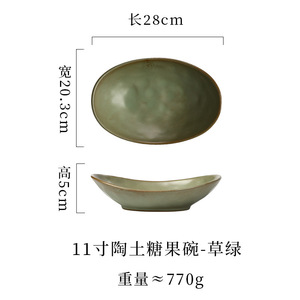 跨境日式陶瓷盘高级糖果碗水果沙拉碗鱼盘粗陶餐具椭圆盘家用菜盘