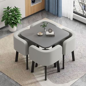 80CM グレースクエアテーブル + ライトグレーレザーチェア 4 脚