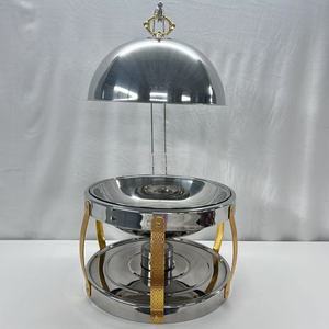 跨境不锈钢自助餐炉金色豪华酒精炉圆形吊盖酒店餐厅轻奢铁艺餐炉