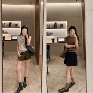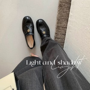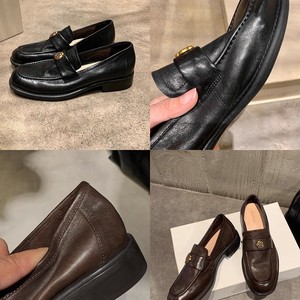 现货~葡萄妈同款 山茶花马皮4cm复古金扣圆头百搭粗跟乐福鞋女