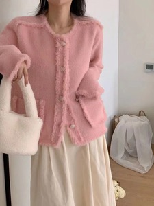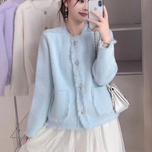2025秋冬仿水貂绒上衣高级感针织衫外套小香风流苏开衫软糯毛衣女