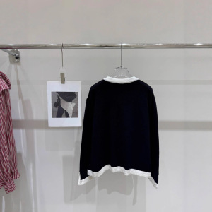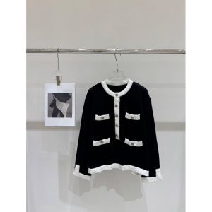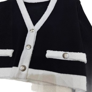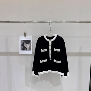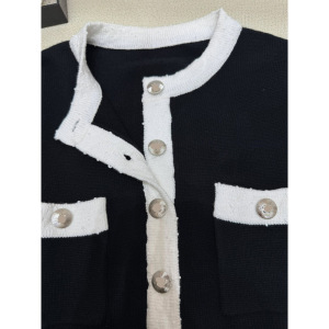 25年秋季新款香家手工坊系列高级黑白间色半长袖单排扣套头女毛衣
