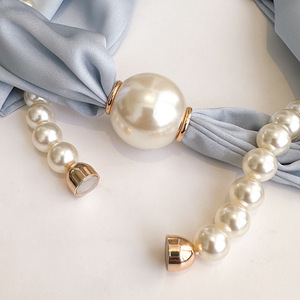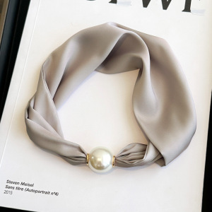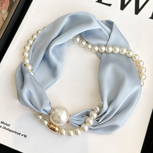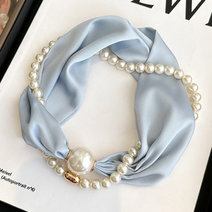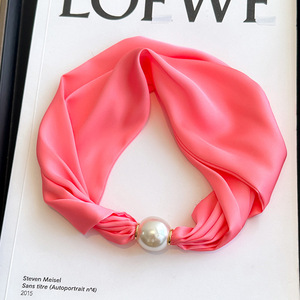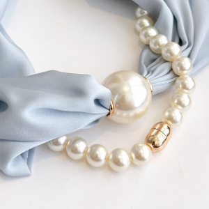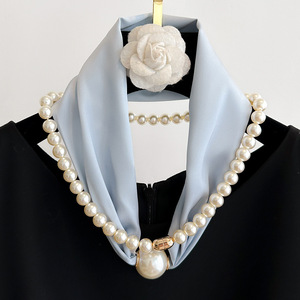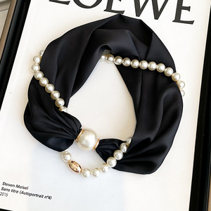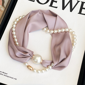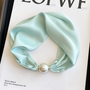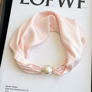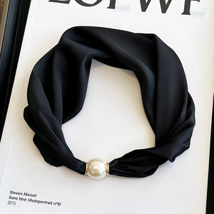 磁吸扣珍珠项链小长条丝巾女士懒人锁骨护颈围脖子搭配衬衫薄围巾